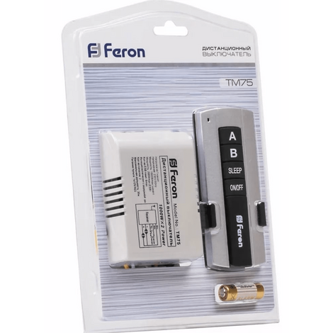 Дистанционный выключатель ТМ Feron с пультом дистанционного управления с помощью которого есть возможность регулирования освещением по радиосигналу.