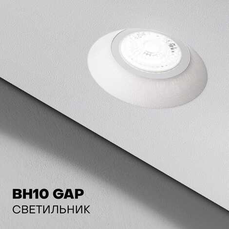 Светильник BH10 GAP — это встраиваемый светильник, созданный специально для натяжных потолков. Он подходит для трёх видов ламп: GU10, MR16 и модуль. Светильник устанавливается по инновационной технологии «втяжка», при которой эластичное полотно натяжного потолка втягивается внутрь и облегает корпус светильника. В результате получается чёткий перегиб полотна, а лампа утапливается внутрь на 15 мм. Угол светового пучка светильника составляет 90 градусов.