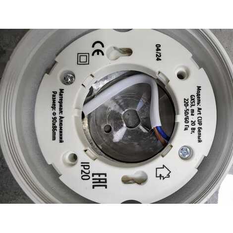 Светильник GX53, ART CUP белый Универсальный, Ø 9см