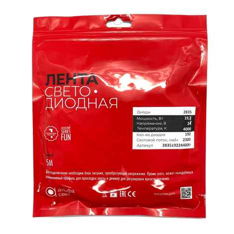 Светод. лента ALFA 3М (2835/19,2w/24V/4000K/192led/2300lm 5м