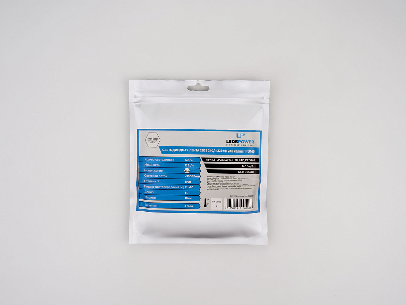 22Вт/м, холодная, 24В, 240/м Светодиодная лента LEDS POWER 2835 Серия ПРО 140