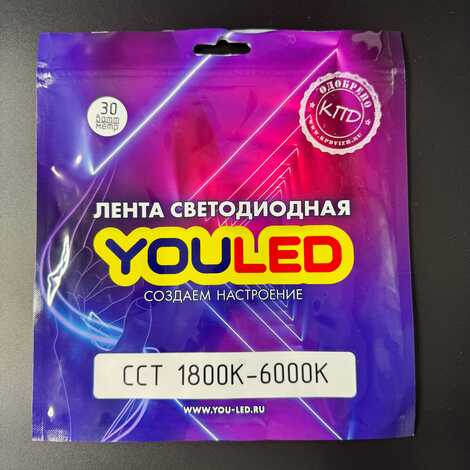 (313) Лента светодиодная двухрядная YouLED ССТ 30Вт 24В 1800-6000К 480д/м