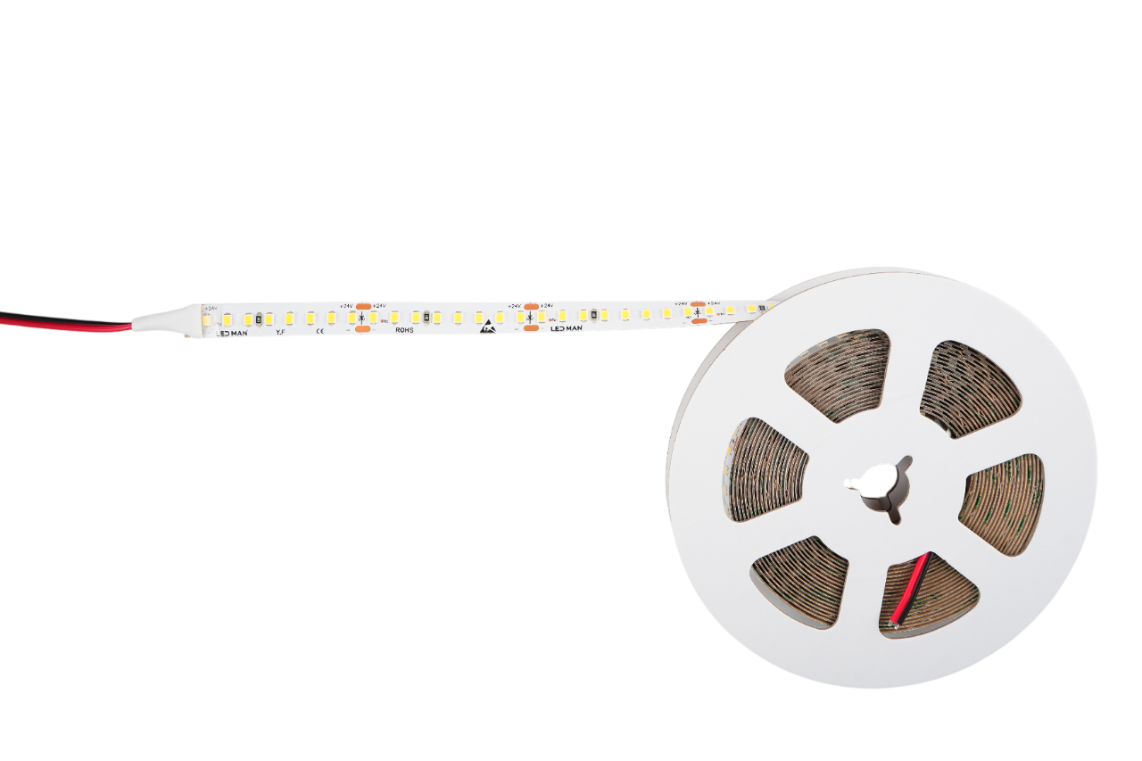 LED MAN, 2835 Лента св/д OPTIMAL, 15вт/м, 160д/м, 24В, 2700K, 3М 9495, 2Oz, 10мм, 5м/кат