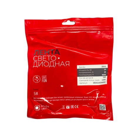 Светодиодная лента ALFA 14w/24v/4000k/168led/1300lm/8mm
