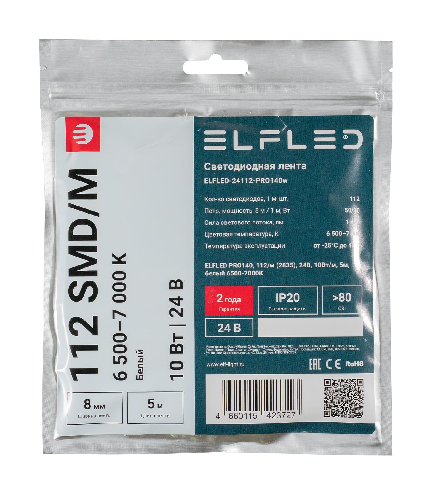 Светодиодная лента ELFLED PRO140 10w /112 точек/6500-7000K/24 V