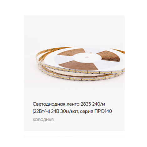 Светодиодная лента LP 24V ПРО140 22Вт 240д/м 6000К (30м) МЕТРАЖ