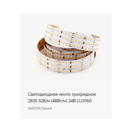 Светодиодная лента LP LUX-160 24V 48Вт 528д/м Трехрядная 4000К (3м)