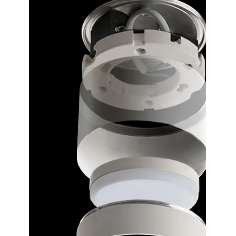 Строгий минималистичный дизайн светильника подчеркивает безупречность исполнения его корпуса, выполненного из аннодированного алюминия и окрашеного порошковой краской белого цвета. Применяется как в жилых помещениях, так и общественных пространствах различного назначения. В зависимости от установленной лампы, может обеспечивать заполняющее освещение или акцентированную зональную подсветку различной световой температуры, как с возможностью диммирования так и без. Ограничением является только мощность рассеивания лампы, которая не должна превышать 35Вт.