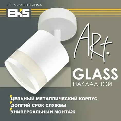 Точечный поворотный светильник ART GLASS можно использовать для освещения и подсветки в жилых, офисных и коммерческих помещениях. Стильный накладной спот станет отличным дополнением современного интерьера. Создавайте неповторимую атмосферу в Вашем доме с помощью светильников EKS!