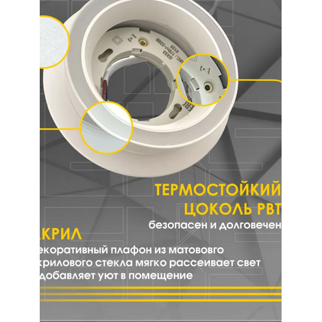 Встраиваемый светильник ART TERRA круглой формы в белом цвете разработан для ламп с цоколем GX53. Эстетичный и сдержанный внешний вид делает его универсальным решением для освещения жилых и коммерческих помещений. Подходит для натяжных и гипсокартонных потолков. Обеспечивает надежную фиксацию лампы и равномерное рассеивание света.