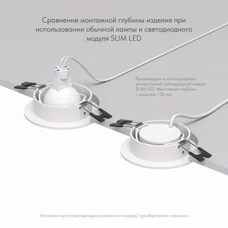 Глубина встраиваемой части с лампой GU10 (патрон приобретается отдельно): 59 мм. Высота лампы 54 мм.