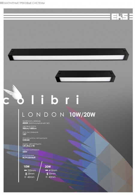 Трековый светильник COLIBRI LONDON 20 Вт, 4000K, 1800ЛМ (черный) от компании EKS для магнитных трековых систем S25.