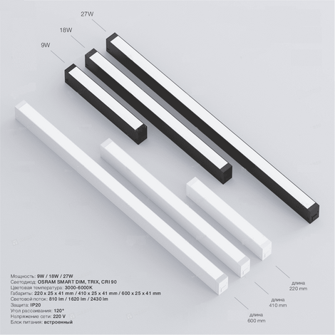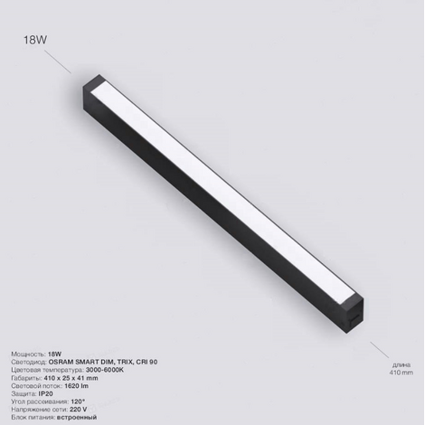 Светильник Luminotti FLAT для трек-системы SLIMLINE 18Вт, 3000-6000К, Smart Dim, чёрный