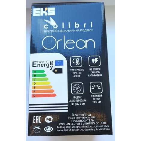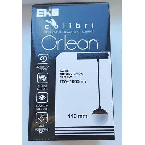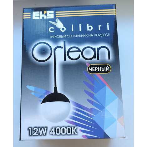 Светильник для трековой системы COLIBRI, ORLEAN, Чёрный, на подвесе, 12W, 4000К, 900Lm, 220х110х1200