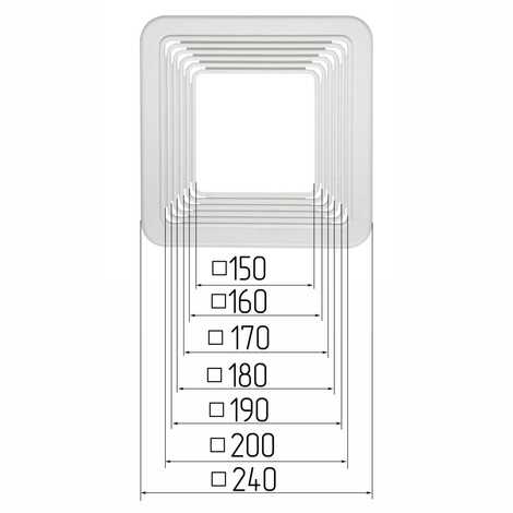 Платформа универсальная (квадрат) 150-200 мм предназначена для монтажа точечных светильников квадратного сечения, в первую очередь ориентирована на светодиодные ультратонкие светильники. Благодаря универсальности конструкции посадочный размер может варьироваться от 150 мм до 200 мм, шаг 10 мм.