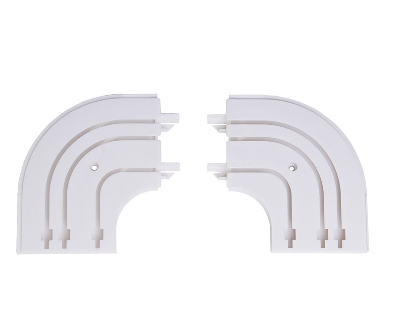 Повороты изготовлены из прочного белого пластика. Они устанавливаются по краям потолочной шины. Благодаря поворотам, шина приобретает эстетически завершенный вид.