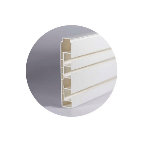 ПВХ карниз с тремя дорожками для крючков. Ширина карниза 8,6 см, толщина 1,7 см.