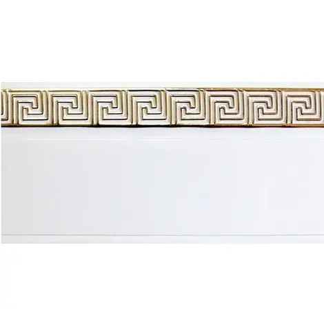 Фасадная планка Magellan Классик бленда ПВХ 5 см, 3 м белого цвета с золотым, "греческим" меандром представляет собой декоративную накладку на карниз.