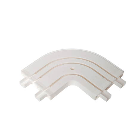 Трехрядный эркерный поворот позволяет соединить карнизы между собой, по которым будут перемещаться шторы.
