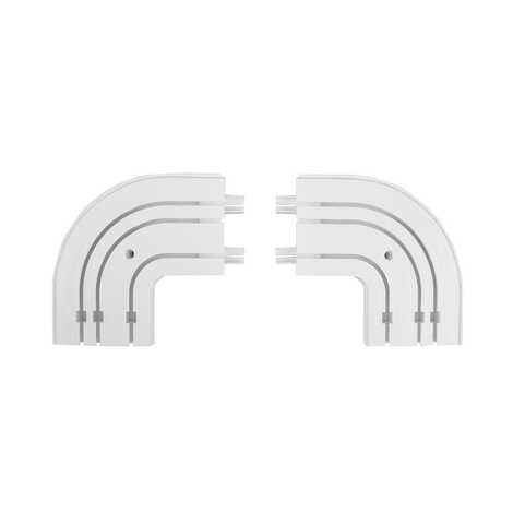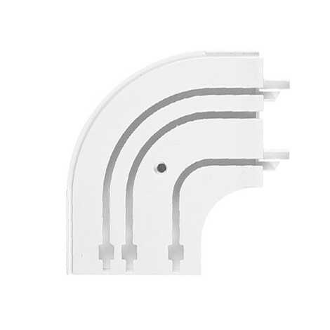 Повороты изготовлены из прочного белого пластика. Они устанавливаются по краям потолочной шины. Благодаря поворотам, шина приобретает эстетически завершенный вид.