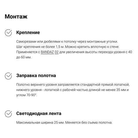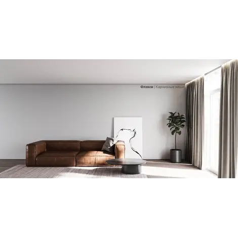 Профиль Flexy GARDINA3 04 для изготовления скрытых карнизных ниш с тремя пазами для установки штор и гардин. Для гарпунной системы крепления полотна с нижней заправкой.