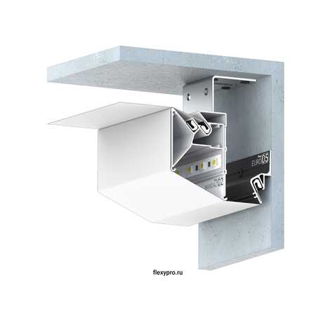 Профиль Flexy FUSION 02 для многоуровневых натяжных потолков с гарпунной системой крепления полотна. С бесщелевым примыканием полотен. С полкой для светодиодной ленты.