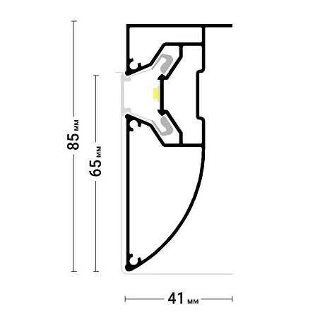 Используется для изготовления криволинейных многоуровневых натяжных потолков с гарпунной системой крепления полотна. С полкой для светодиодной ленты и светорассеивающей вставкой.