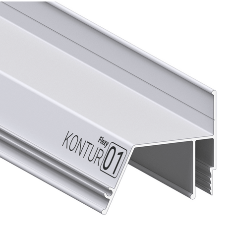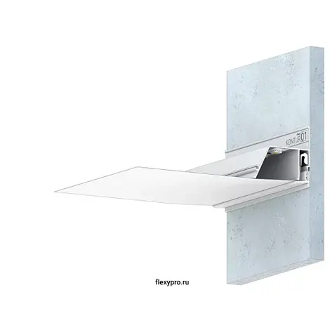 Стеновой контурный профиль Flexy KONTUR 01 для натяжных потолков с гарпунной системой крепления полотна. С полкой для светодиодной ленты для подсветки через полотно, направленной вниз. Профиль применяется для создания натяжных потолков с подсветкой по периметру. Есть возможность установки светодиодной ленты в два ряда. По периметру профиль закрывается стеновой вставкой.