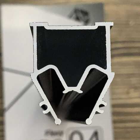Разделительный профиль Flexy EURO 04 с теневым зазором для натяжных потолков с гарпунной системой крепления полотна. Используется для наклонных натяжных потолков на мансардах либо для разделения поверхности полотна на несколько сегментов без использования разделительной вставки.