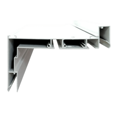 Белый алюминиевый профиль для создания двухрядного скрытого карниза с креплением тканевого натяжного потолка в разных плоскостях.
