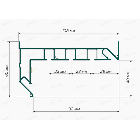 Угол сварной прямой наружный GARDINA3 03 — это трёхрядный профиль с косой заправкой. Он используется для создания наружных углов в натяжных потолках.
