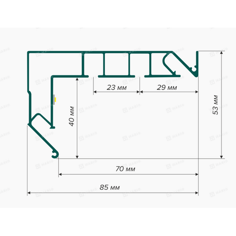 Угол сварной секторный наружный GARDINA2 02 — это двухрядный профиль с косой заправкой. Он используется для создания наружных углов в натяжных потолках.