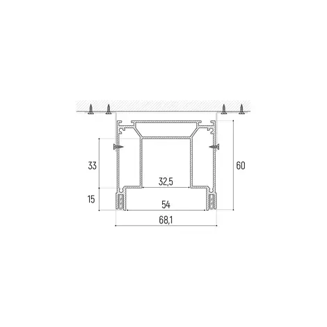 Компонент системы для встраивания трёхфазного трека Slott Intruder со скрытым фиксатором светильника.