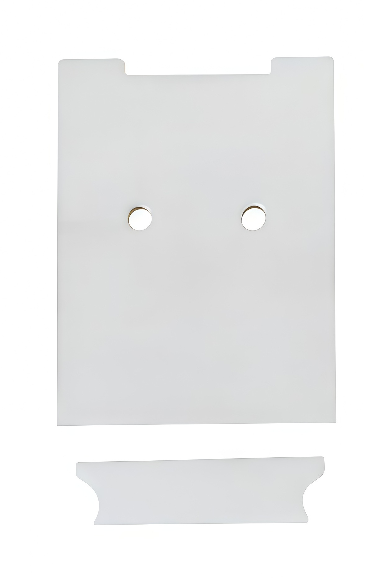 Комплект торцевых заглушек с гвоздиками для профиля КП-04 белого цвета (внешняя заглушка – 2 шт., внутренняя заглушка на 3М скотче – 2 шт., гвоздики – 4 шт.), материал заглушек: полистирол белого цвета.