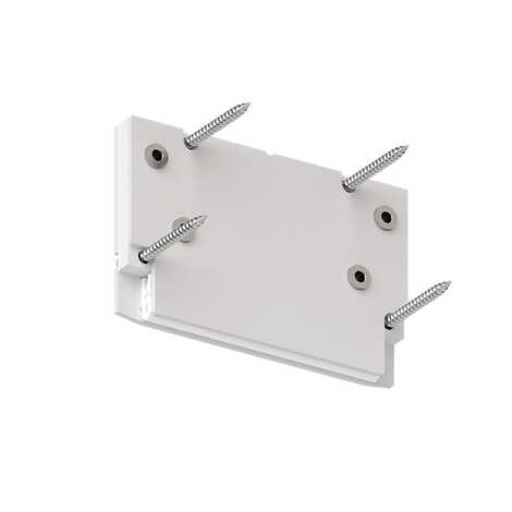 Металлическая торцевая заглушка с системой крепления  SLOTT окрашена в белый цвет, что помогает ей вписаться в изначальный дизайн жилого помещения. Он участвует во встраивании однофазного трека по типу, чтобы фиксатор светильника оставался видимым. В комплекте присутствуют саморезы и демпфер, облегчающие монтаж.