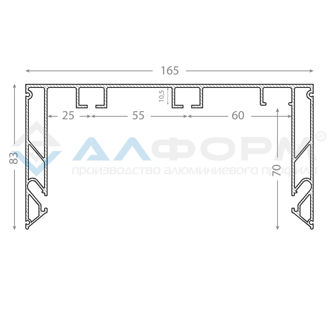 Алюминиевый профиль для монтажа натяжного потолка из ПВХ пленки на гарпунной системе крепления.Предназначен изготовления скрытой ниши карниза штор, представляет собой цельнометаллический профиль с двумя рядами для крепления крючков и местом для установки подсветки.Имеет необходимые расстояния для беспрепятственного движения штор между собой. Расстояние до первого ряда штор 60мм, расстояние до второго ряда 55мм, глубина дорожек 70мм.
