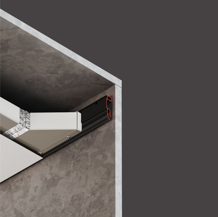 Линейный щелевой диффузор скрытого монтажа Flexy EURO 07 в натяжной потолок.