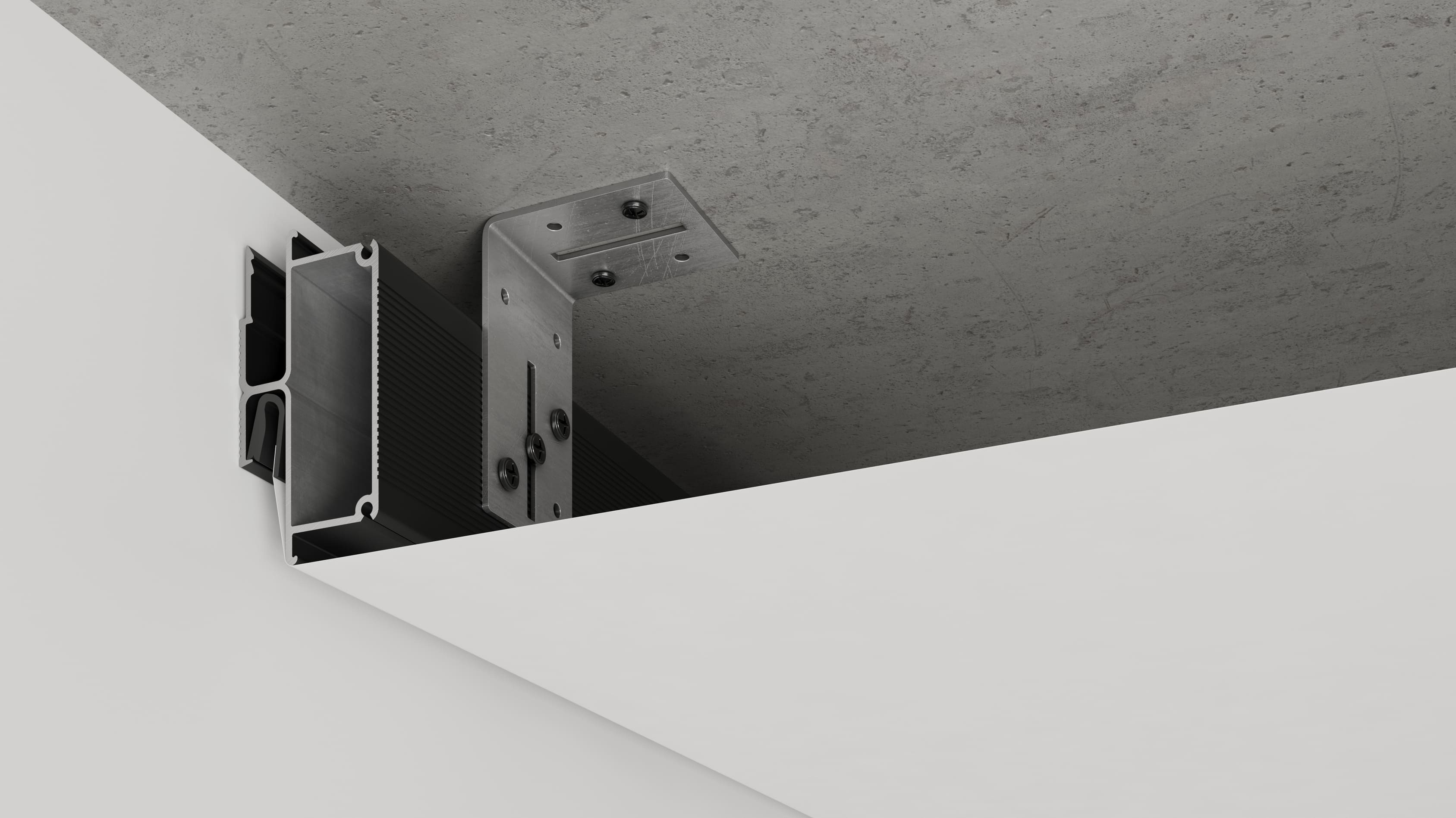 Double Box Черный используется для монтажа натяжных потолков к стенам, которые трудно или невозможно просверлить, таких как керамогранит, природный камень, стекло и т.д.