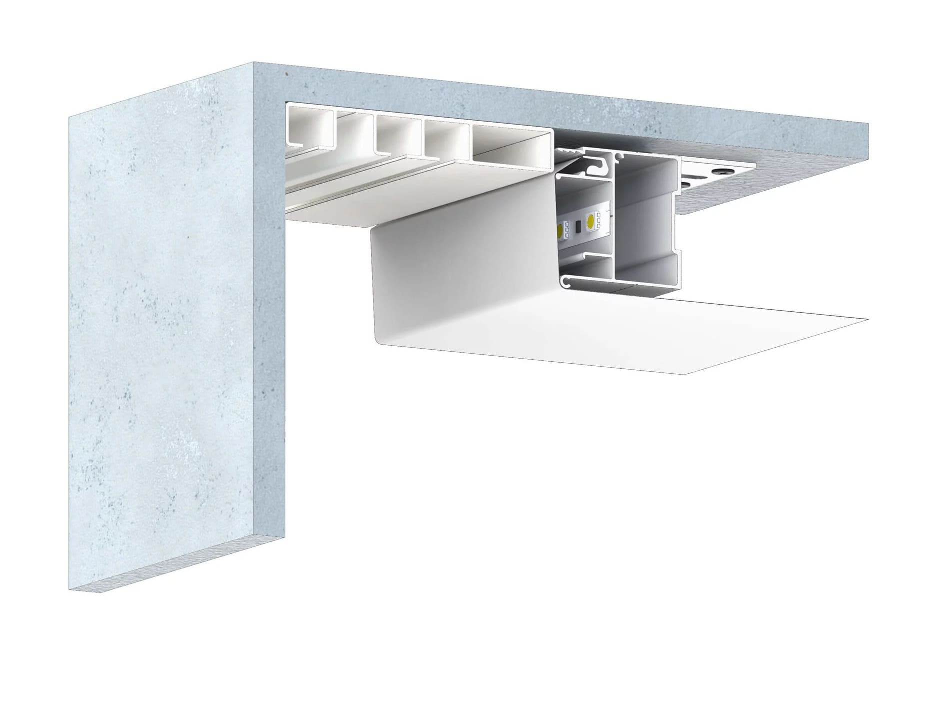 Профиль Flexy BRUS 01 предназначен для натяжных потолков с гарпунной системой крепления полотна. Этот профиль используется для создания различных конструкций, ниш и обхода сложных архитектурных элементов. Отличительной особенностью Flexy BRUS 01 является наличие полки для установки светодиодной ленты, что позволяет интегрировать подсветку непосредственно в конструкцию потолка, создавая дополнительные световые эффекты.
