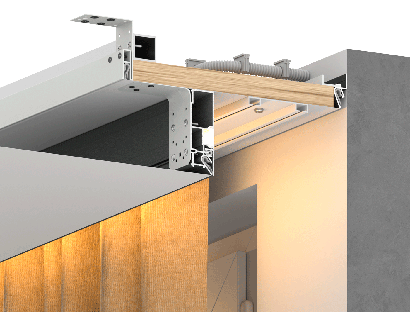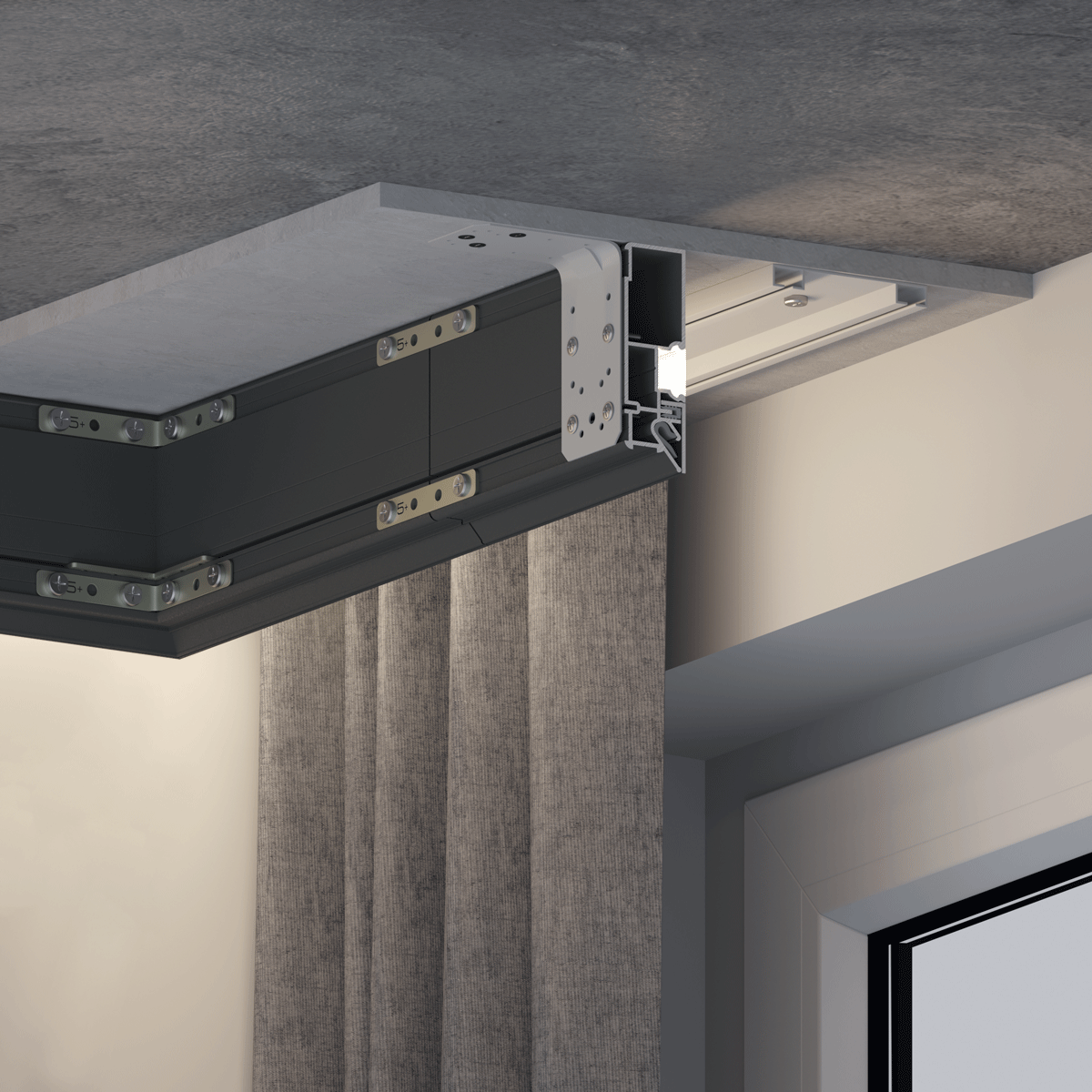 Допускается применения с тканевым потолками по системе клинч. Получил модернизированную систему фиксации уголка и удобные пазы для стыковки под наши соединители.