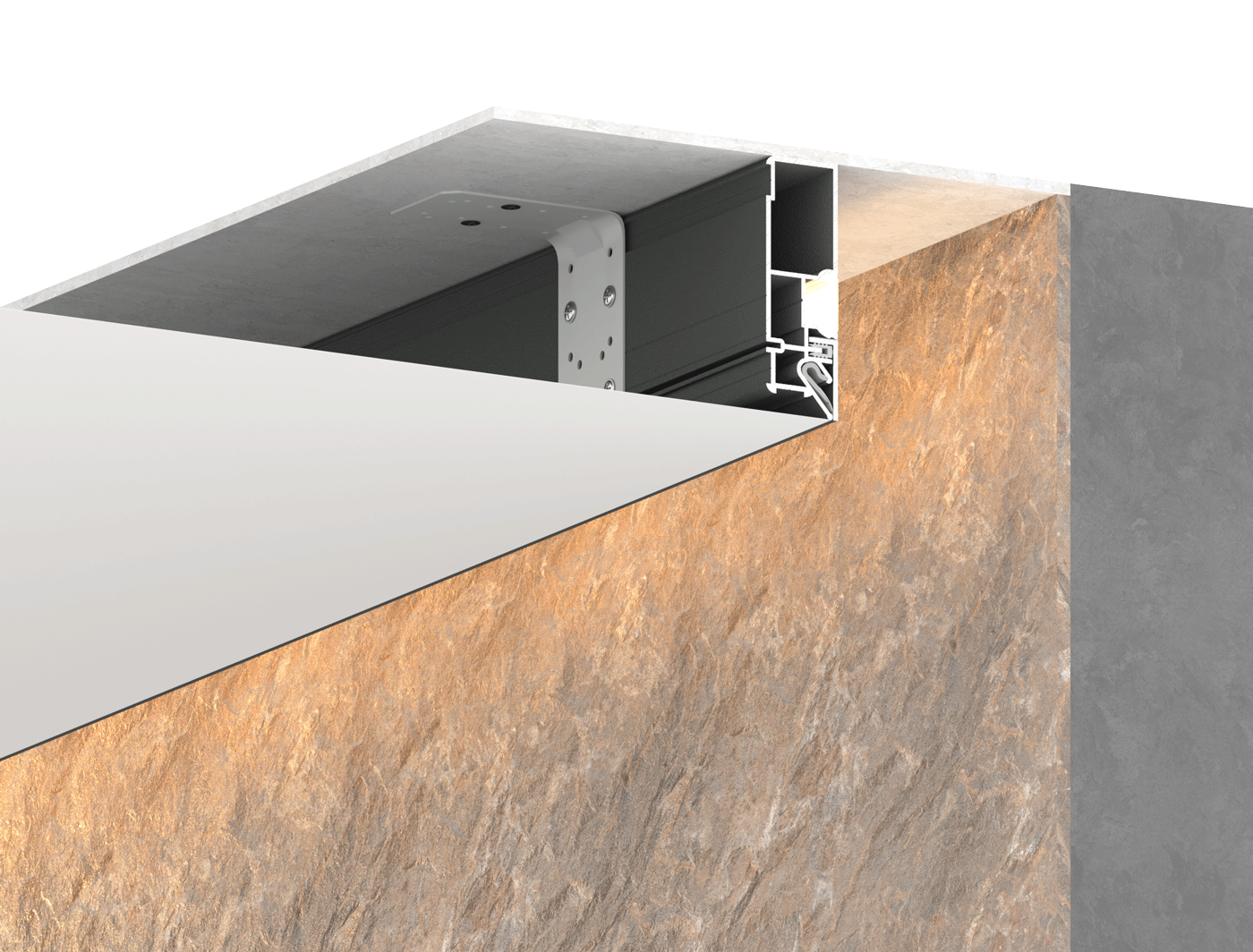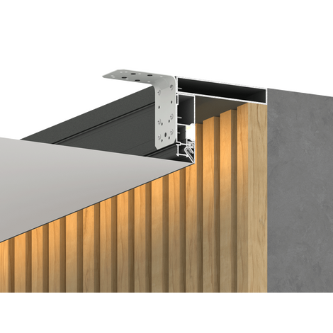 Конструкционный профиль с подсветкой высотой 80мм. Разновидность профиля FOTON. Рекомендуется к применению с ПВХ потолками на гарпунной системе крепления.