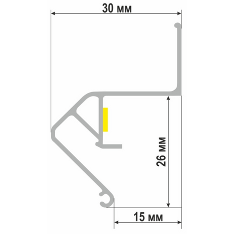 - Расстояние от стены до края профиля составляет 23,5 мм, что позволяет создать направленный вниз световой поток для равномерного освещения стены.