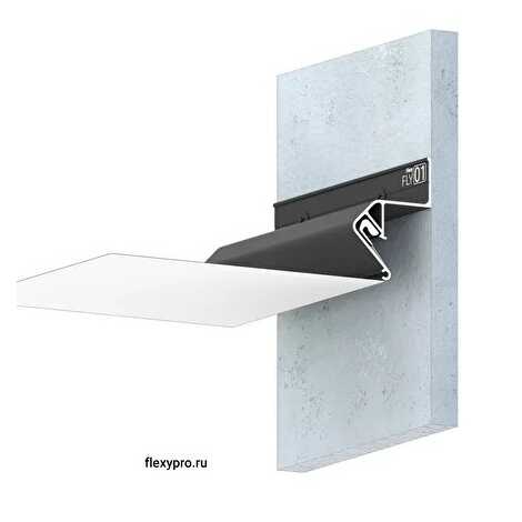 Стеновой парящий профиль Flexy FLY 01 для натяжных потолков с гарпунной системой крепления полотна. С полкой для светодиодной ленты. Без светорассеивающей вставки.