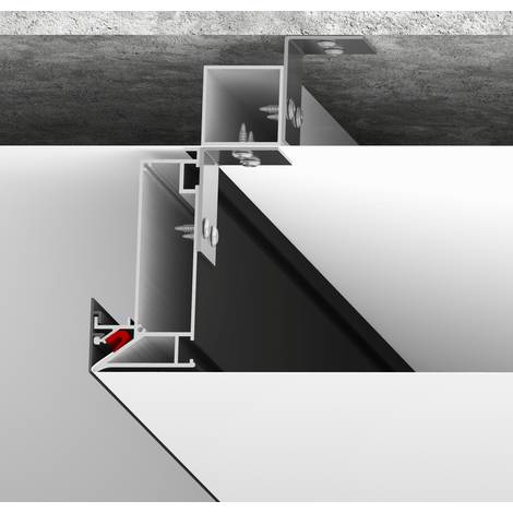 Применяется для организации скрытой ниши, с установкой механизмов электрокарниза или экрана проектора. Профиль крепится к потолку при помощи анкерных уголков.