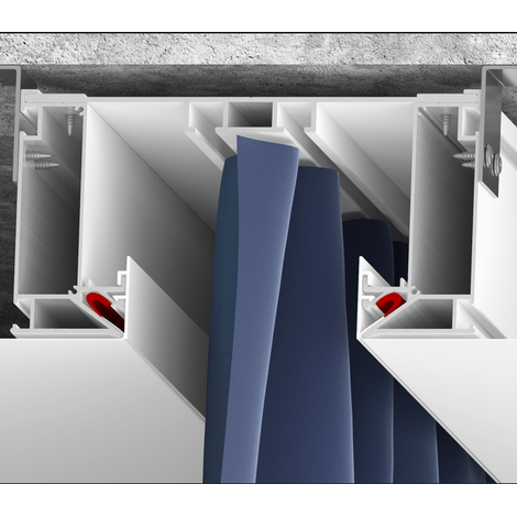 Ниша под электрокарниз и экран проектора — это специальная конструкция, для монтажа электрокарниза или экрана проектора, ниша может быть белого или черного цвета. При изготовлении конструкции ниши применяются алюминиевые профили B01 (Basis), расположенные симметрично друг к другу и композитные листы. Есть возможность установки подсветки. Конструкция профиля предусматривает фиксацию полотна при помощи гарпунной системы крепления. Паз для фиксации гарпуна закрывается маскирующей алюминиевой или ПВХ вставкой, черного или белого цвета.