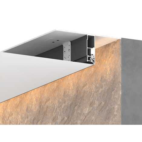 Профиль позволяет элегантно «завершить» натяжной потолок, обеспечивая ровный закрытый край с подсветкой, скрытой за рассеивателем. Идеален для создания ниш для штор, переходов уровней, обходов лестниц, обходов реек с подсветкой, а также парящих потолков и других дизайнерских решений. Обновлённая система фиксации уголка и удобные пазы для стыковки под соединители облегчают установку. Профиль поставляется в комплекте с уплотнителем, уголком, рассеивателем и двумя короткими прямыми соединителями.