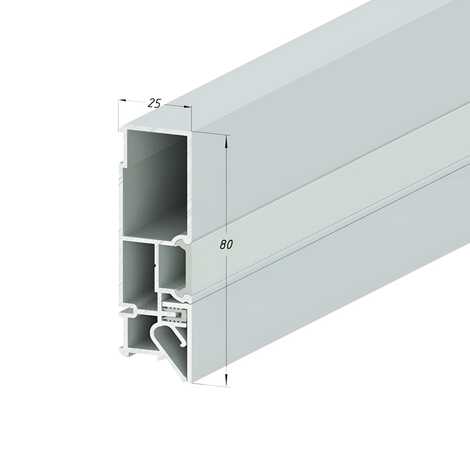 Профиль имеет фиксированные размеры: 80 мм в высоту и 25 мм в ширину. Может использоваться как с ПВХ-полотнами, так и с тканевыми, благодаря системе «клинч».