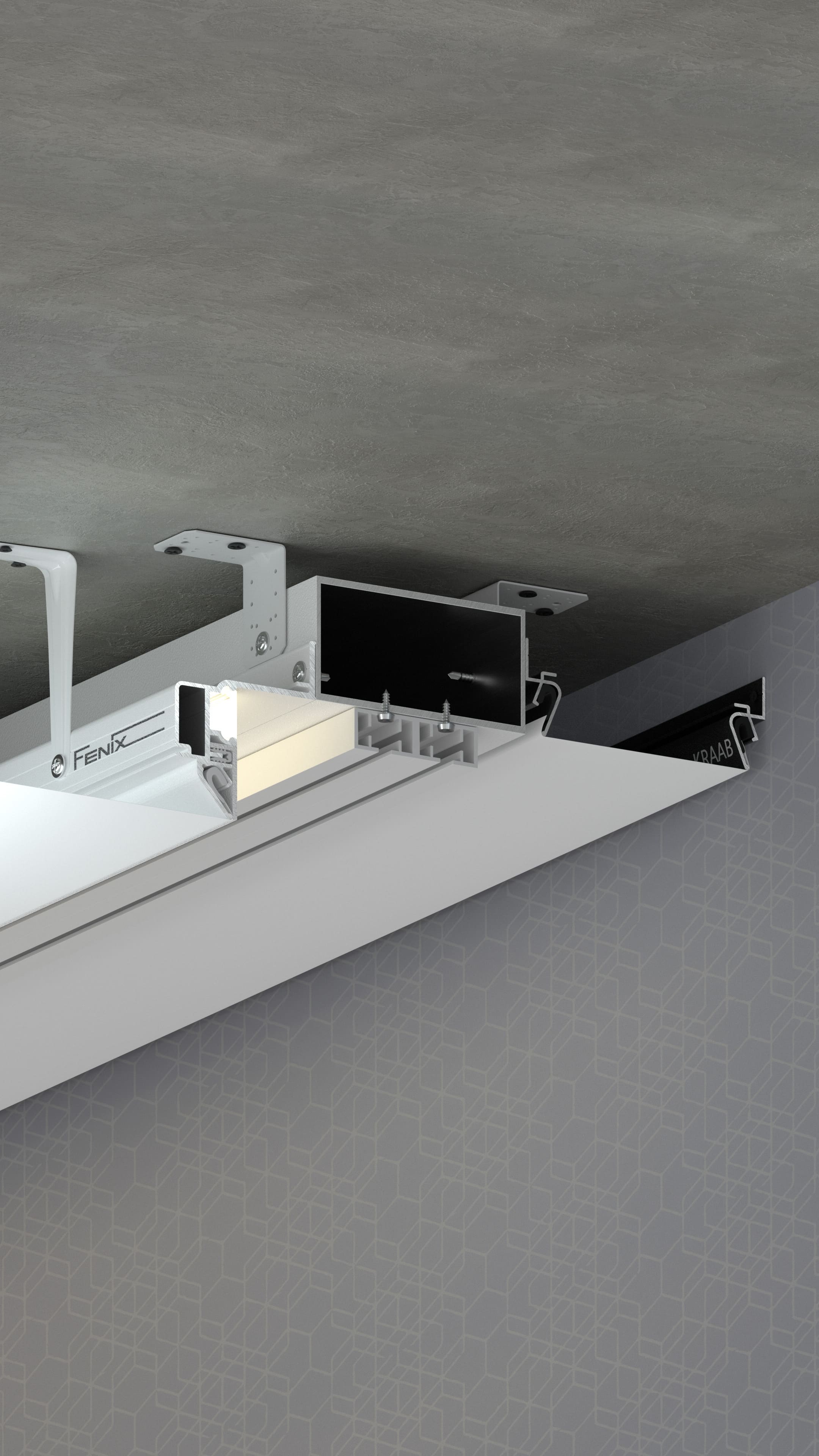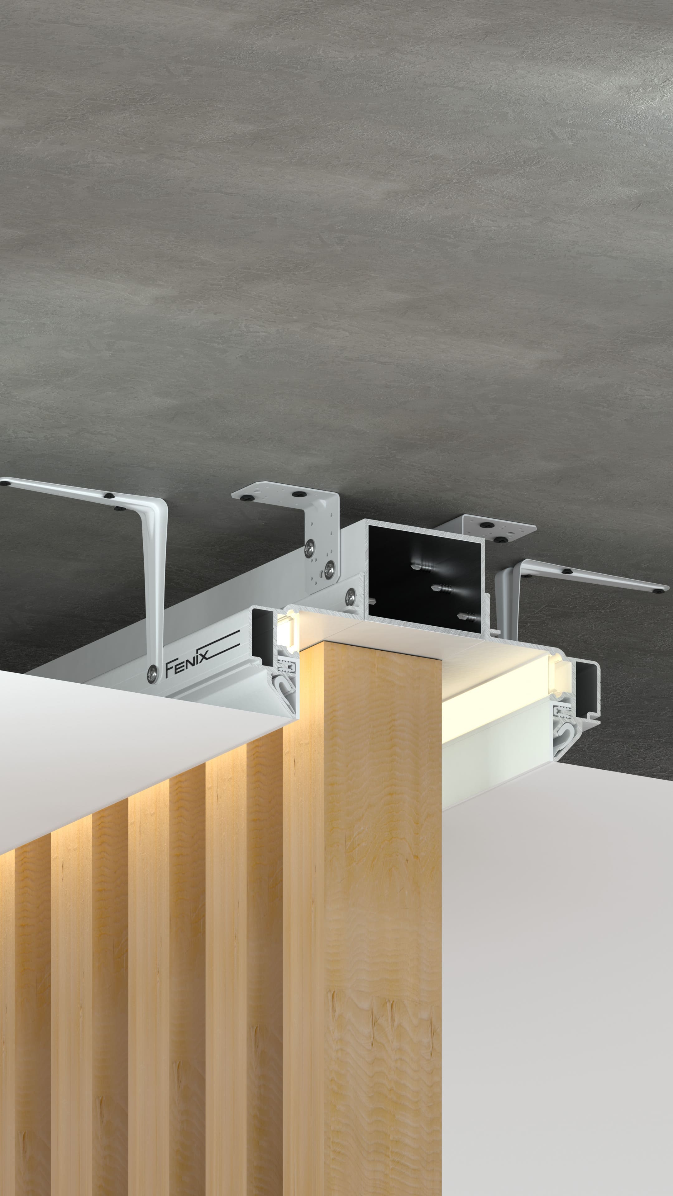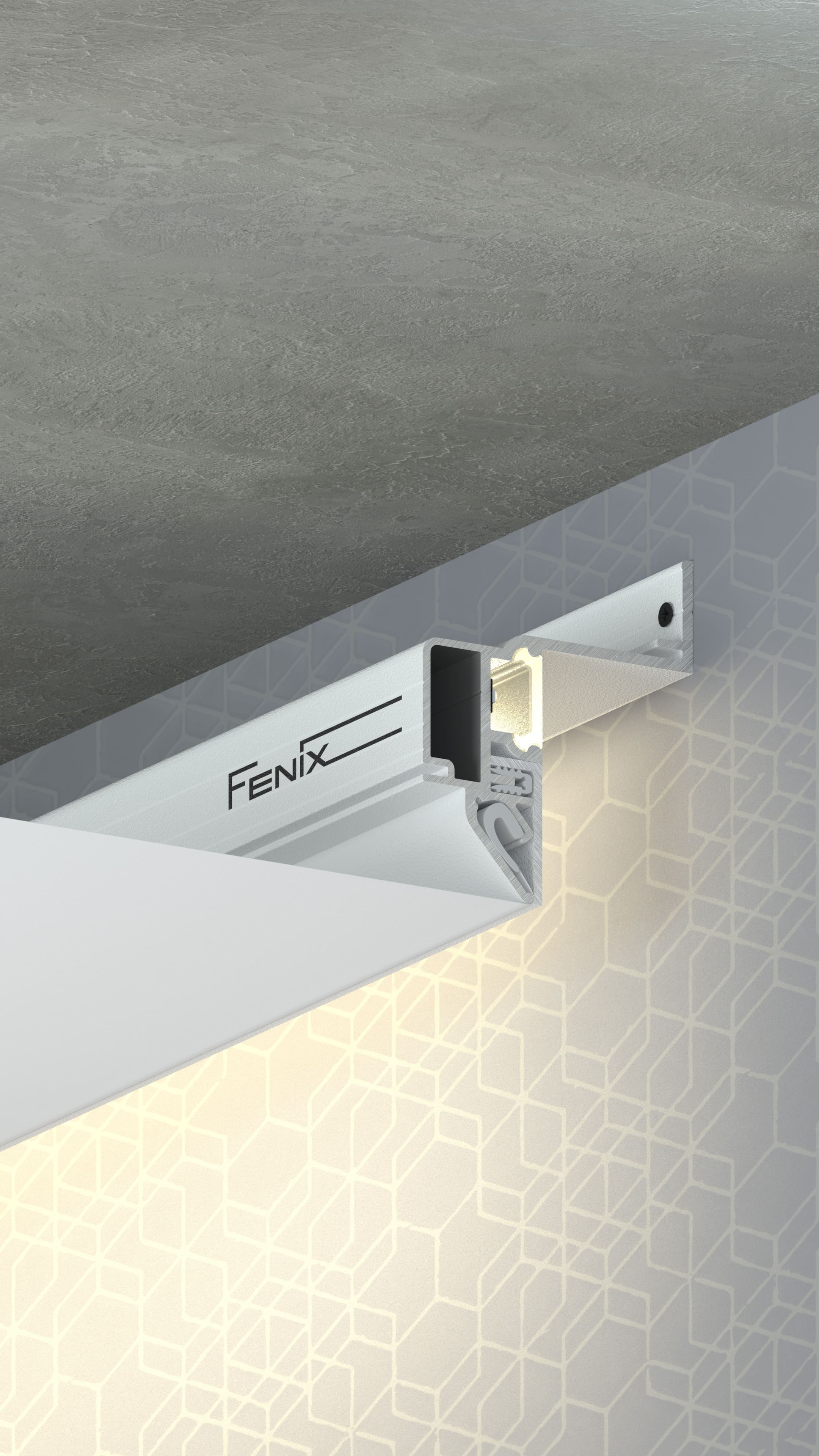 Профиль для интерьерной подсветки FENIX 2.0 имеет обновленную систему фиксации уголка и модернизированную форму. Благодаря этим улучшениям, профиль идеально стыкуется с конструкционным профилем FOTON, что значительно упрощает выполнение разнообразных монтажных задач.