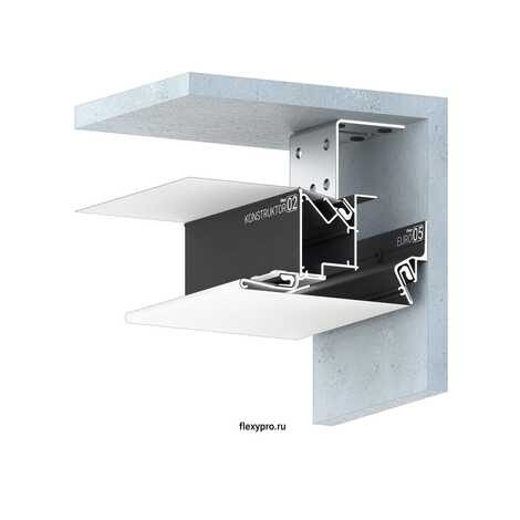 Стеновой профиль Flexy EURO 02 с теневым зазором для натяжных потолков с гарпунной системой крепления полотна.