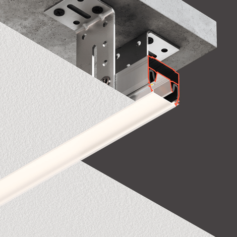 Профиль интегрированного линейного освещения Flexy LINE 22 M для натяжных потолков с гарпунной системой крепления полотна, для основного источника света.